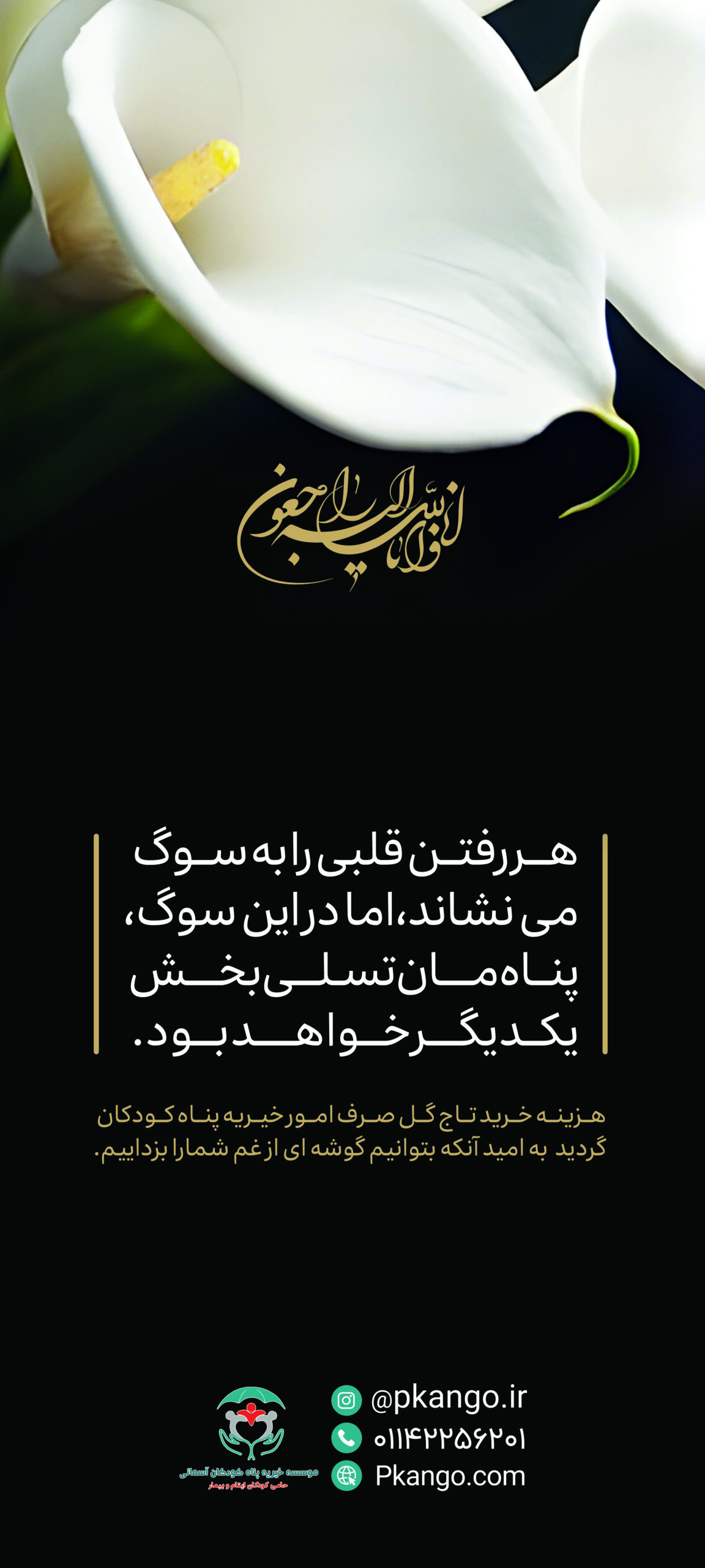 در تمام سالیان گذشته، سفارش استندهای تسلیت پناه یکی از روشهای یاریرسانی شما عزیزان به کودکان پناه بوده است.با سپاس از اعتماد شما